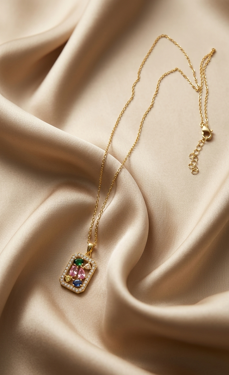 Adorned with colorful cubic zirconia stones, it adds a vibrant touch of elegance and a subtle sparkle that enhances its overall charm.