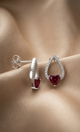 The design is adorned with high-quality white cubic zirconia and rich red corundum stones, adding a refined sparkle and a luxurious touch.