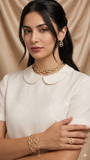 A statement of refined elegance, this bracelet is crafted from premium stainless steel and finished with a rich layer of 18K gold plating.