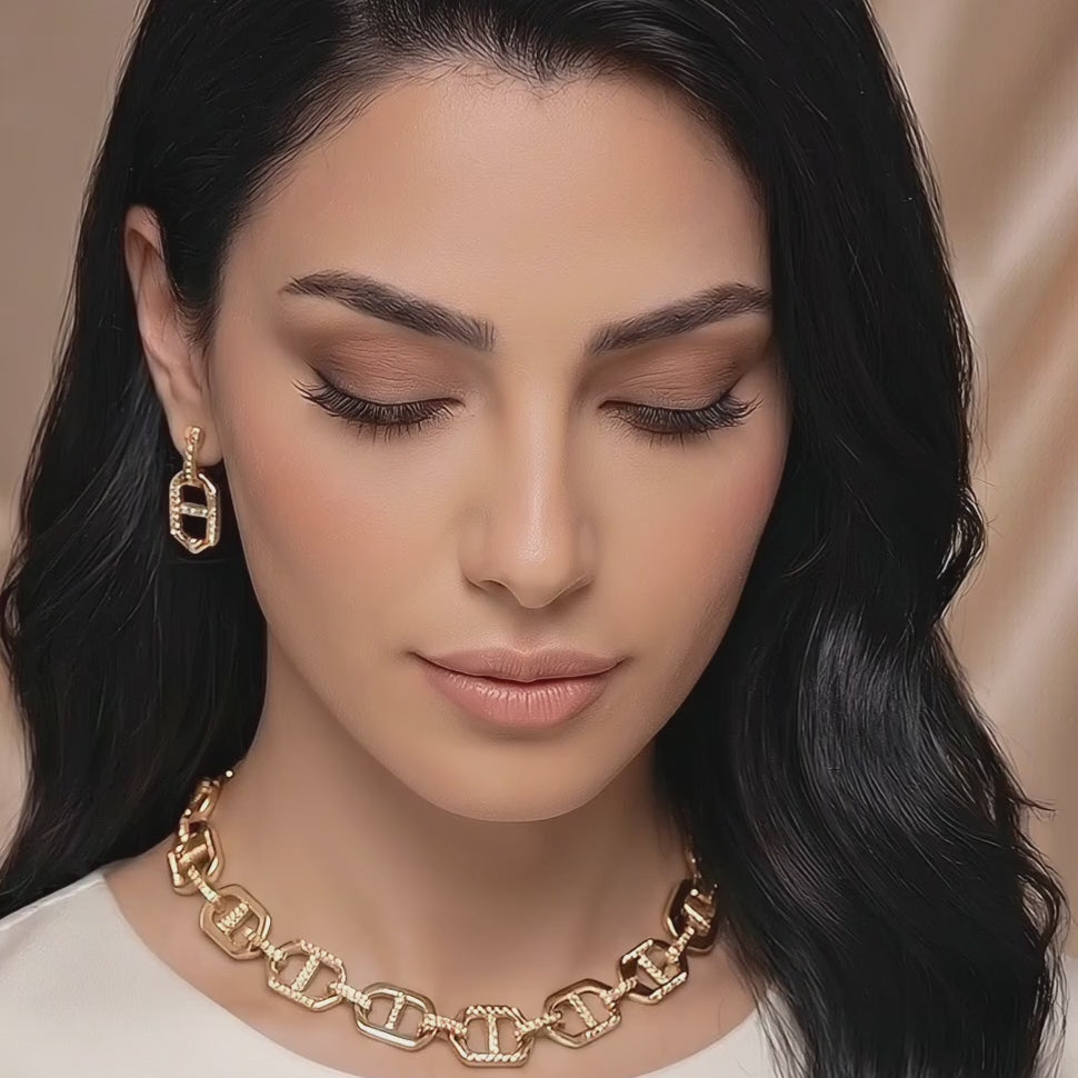 The bold interlocking design is elevated with delicate pavé details, creating a perfect balance between strength and sophistication. Designed to catch the light from every angle, it adds a subtle brilliance to both everyday looks and evening styling.