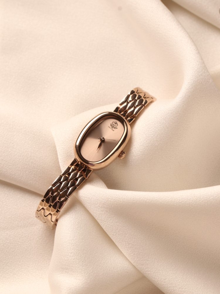• Elegant elongated oval case that flatters the wrist