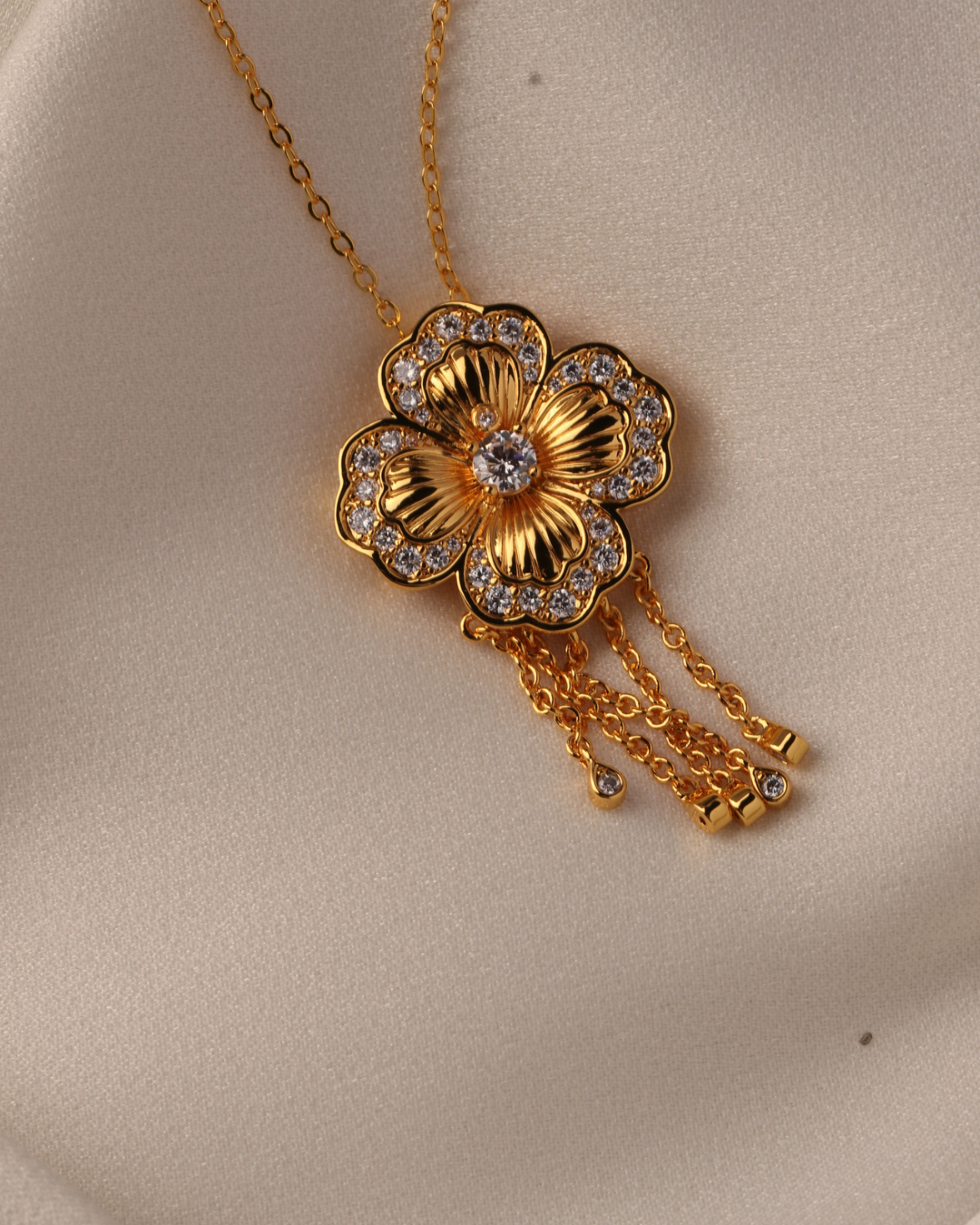 Golden Flora Necklace & Earrings Set – 18K Gold-Plated Brass with Crystals