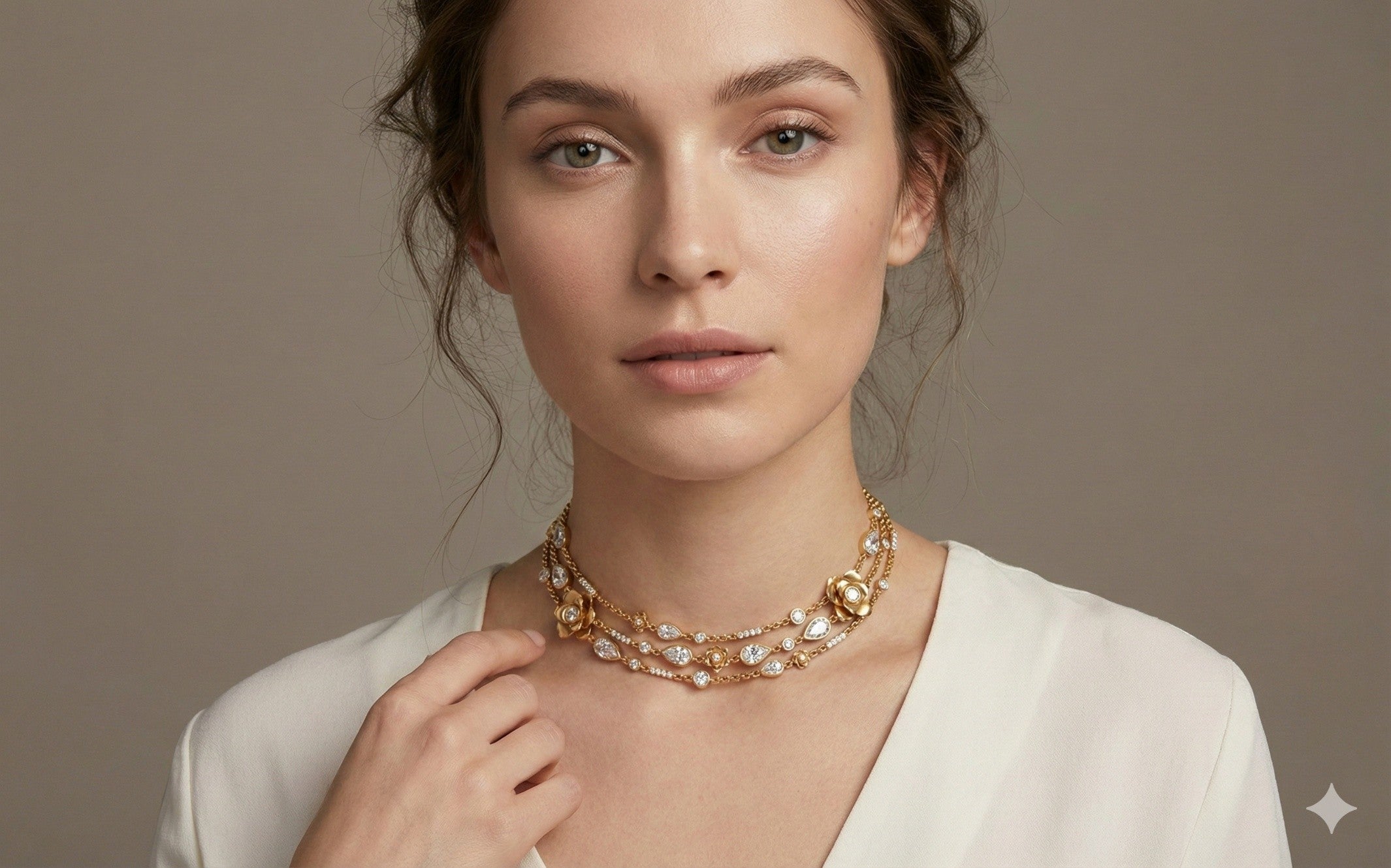 The Rosey 3-chains Statement Choker commands attention with its sophisticated layered design and exquisite craftsmanship. Each tier features meticulously handcrafted rose motifs adorned with cascading pear-cut cubic zirconia that catches light with every movement. This architectural piece contours the neckline beautifully, delivering a dramatic yet distinctly feminine silhouette ideal for weddings, black-tie events, and bridal occasions. The thoughtful construction ensures both visual impact and wearable comfort, making it an investment piece that elevates any formal ensemble with timeless elegance.