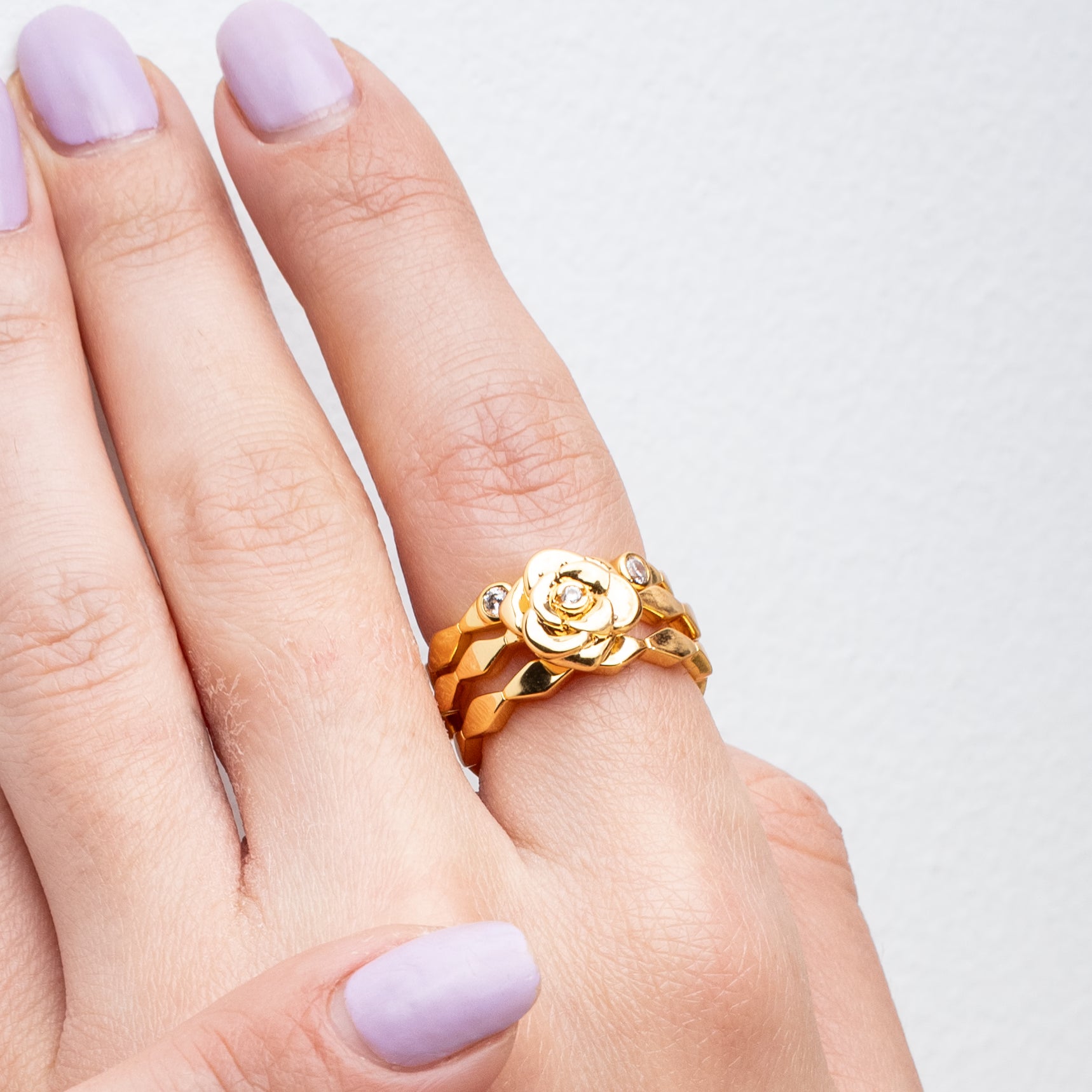 Elevate your everyday elegance with the Shahad Hexagon Cuff Ring, a contemporary masterpiece that showcases the beauty of geometric design with sparkling sophistication. This adjustable free-size ring features a continuous honeycomb hexagonal texture throughout the 6mm band, accented with delicate crystal details at each end that add just the right touch of sparkle. Crafted from premium brass with luxurious 21K gold plating, this modern cuff ring delivers minimalist elegance that complements any style. The open design ensures a perfect fit on any finger, while the comfortable 6mm width provides substantial presence without feeling heavy or restrictive. Perfect for stacking with other rings or wearing solo as a sleek statement, this versatile piece adapts to your mood and outfit with effortless grace. Whether you're heading to the office, meeting friends for coffee, attending Ramadan gatherings, celebrating Eid, or dressing up for weddings, this ring adds contemporary sophistication to every occasion. The geometric honeycomb pattern represents structure, community, and natural beauty—values that resonate with the modern woman who balances tradition with innovation. The crystal accents catch light beautifully, adding subtle glamour without overwhelming the minimalist aesthetic. For the woman who appreciates clean lines, modern design, and versatile jewelry that works as hard as she does, this ring is an essential wardrobe staple. It's not just a ring—it's a daily reminder of your impeccable taste and appreciation for meaningful, well-crafted jewelry.