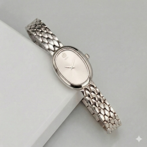 Discover timeless elegance with the Sadeem Al Fiddha, a stunning silver oval watch that captures the essence of refined sophistication. Featuring a mesmerizing sunray dial that dances with light, this women's stainless steel watch combines classic design with modern craftsmanship. The secure link bracelet and polished oval case create a seamless silhouette that transitions effortlessly from boardroom to evening events. Powered by reliable Japanese quartz movement and built with 3ATM water resistance, this timepiece offers both beauty and durability. Complete with a 2-year manufacturing warranty, the Sadeem Al Fidha is the perfect choice for women who appreciate understated luxury and everyday elegance
