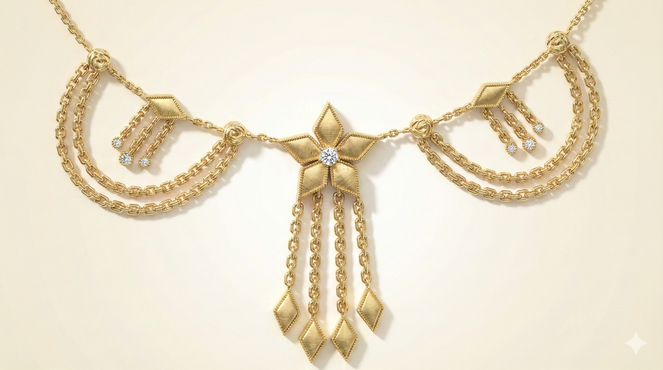 Command attention with the Stella Heritage Choker, a stunning multi-strand gold-plated necklace that combines modern choker styling with heritage-inspired design elements. This sophisticated layered choker features cascading chains adorned with diamond-shaped charms and a central star pendant that creates a captivating focal point at your neckline. The adjustable length allows you to wear it as a close-fitting choker or a slightly longer necklace, offering versatile styling options for different looks and occasions. Perfect for both contemporary casual wear and elegant evening ensembles, this statement piece adds instant glamour and sophistication to any outfit.